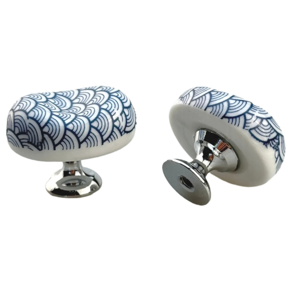 Blue wave Japanese style ceramic cabinet handle